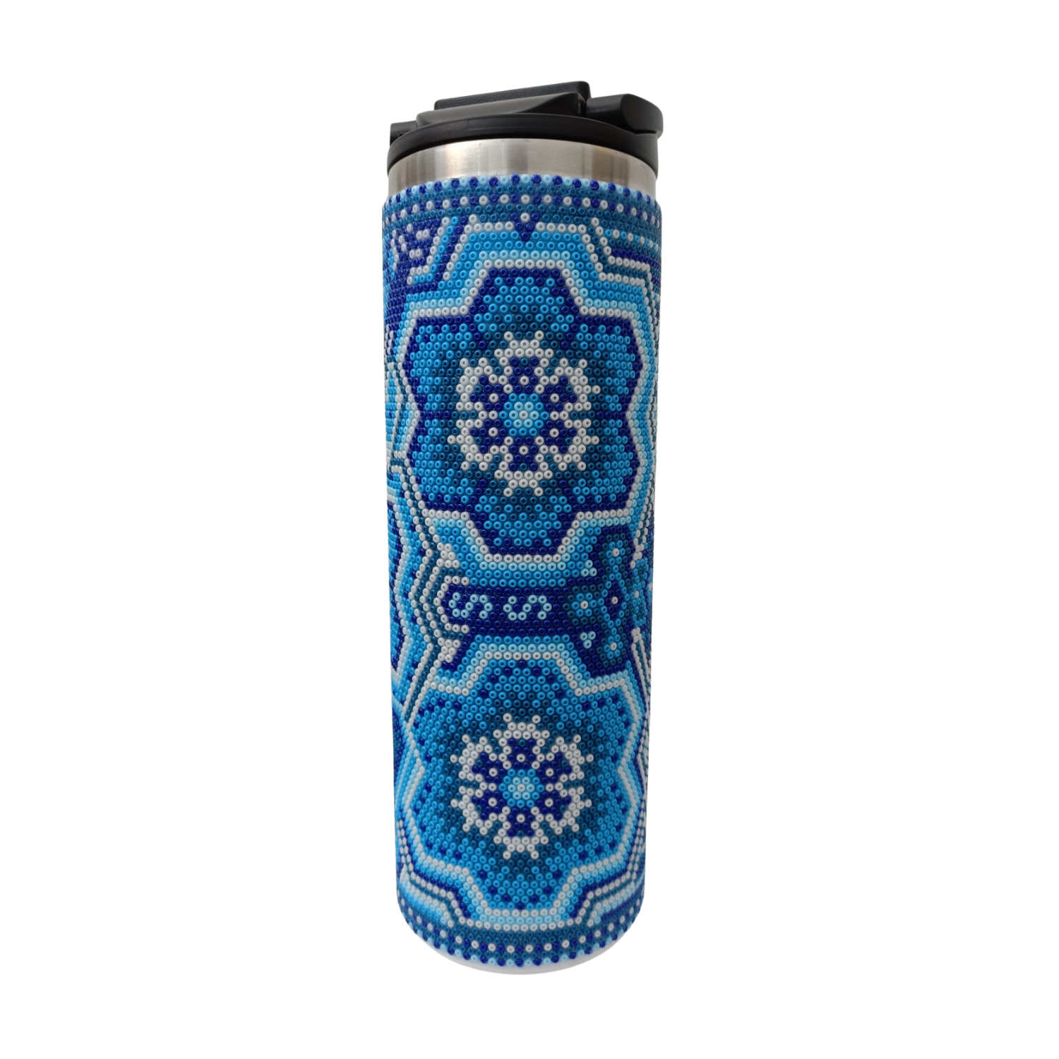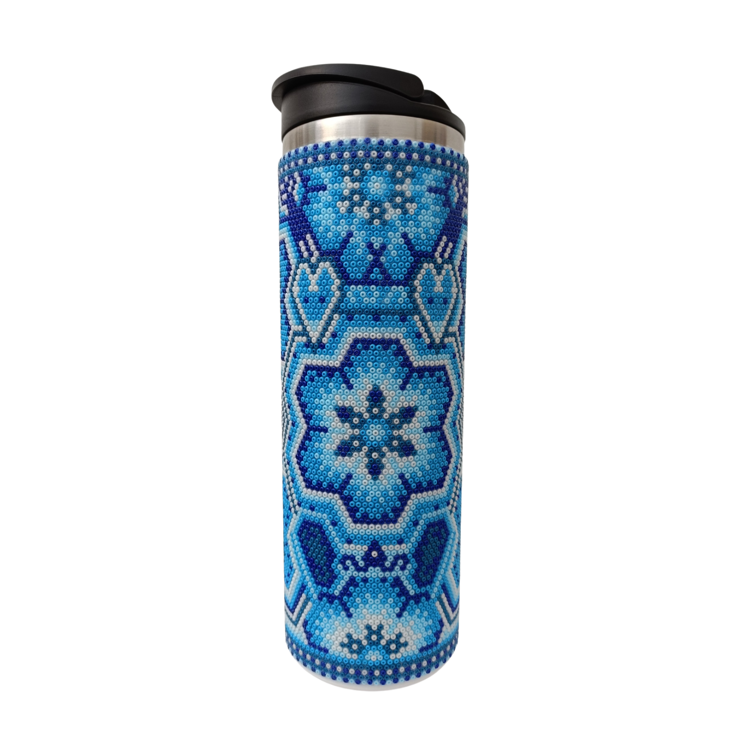 Elaborado en chaquira incrustada con pegamento epóxico de alta dureza, puede lavarlo con agua sin problema, la chaquira se mantiene adherida a lo largo del tiempo.
